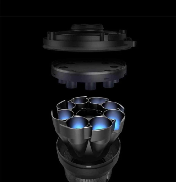 Odkurzacz Dreame V9P posiada pięciostopniowy system filtracji, który uniemożliwia ponowne zanieczyszczenie powietrza i utrzymuje siłę ssania na stałym poziomie. Pierwsze trzy etapy filtracji w komorze wielocyklowej wyłapują duże cząsteczki kurzu i brudu i oddzielają je od powietrza. Następnie powietrze przechodzi przez filtr HEPA, który wychwytuje do 99,5% cząsteczek o wielkości do 0,3 mikrona, oraz przez gęsty filtr piankowy, który usuwa drobne pyłki zawieszone w powietrzu. Pojemnik na kurz i filtry odkurzacza nie tylko zatrzymują kurz, ale także szkodliwe bakterie i roztocza, zapobiegając ich unoszeniu się w powietrzu, a jednocześnie pozwalają na wydostawanie się jedynie 100% czystego powietrza. Ponadto, filtry można myć bez utraty jakości czyszczenia.