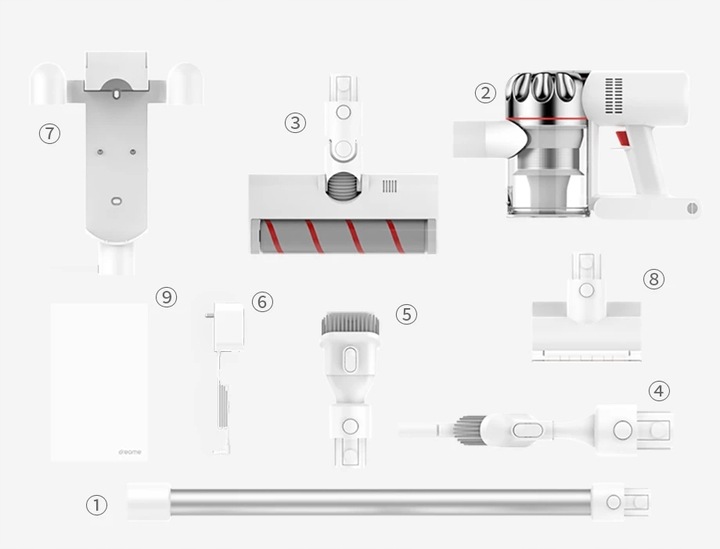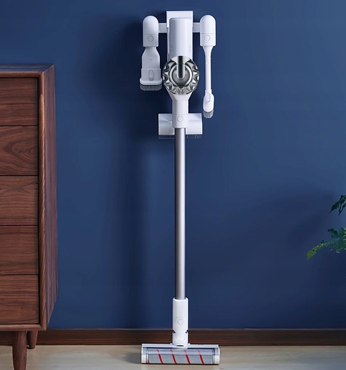 Do uzupełniania energii i kompaktowego przechowywania pionowego odkurzacza Dreame V9P służy stacja dokująca z zasilaczem. Wystarczy, że powiesisz swój sprzęt na uchwycie, a dzięki sprężynowym stykom sam zacznie się ładować. Posiada również uchwyty na wszystkie dodatkowe szczotki, nie tylko do odkurzacza. Jest to praktyczne, ponieważ nie trzeba ich ciągle wyjmować z pudełka. Dzięki temu oszczędzasz zarówno czas, jak i miejsce w swoim domu.