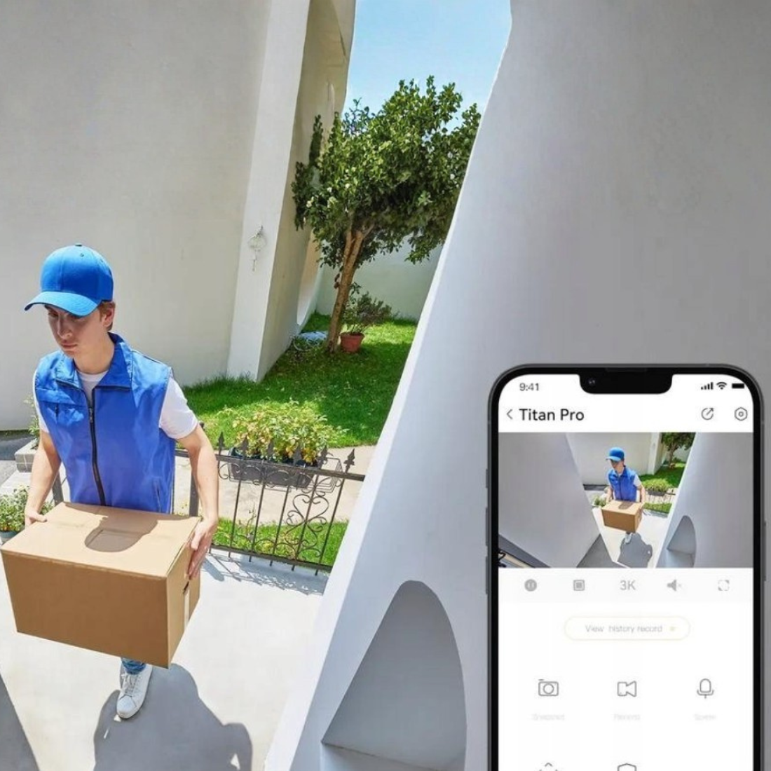 Titan Pro skutecznie odstrasza intruzów za pomocą głośnego alarmu dźwiękowego oraz migających czerwonych i niebieskich świateł, których działanie można personalizować. Kamera oferuje dwukierunkową komunikację audio z niskim opóźnieniem, umożliwiając wyraźne rozmowy w czasie rzeczywistym. Urządzenie potrafi automatycznie śledzić osoby i pojazdy, obracając się do 340 stopni w poziomie oraz 90 stopni w pionie, a także realizować zaplanowane patrole dzięki punktom kontrolnym i harmonogramom pracy.